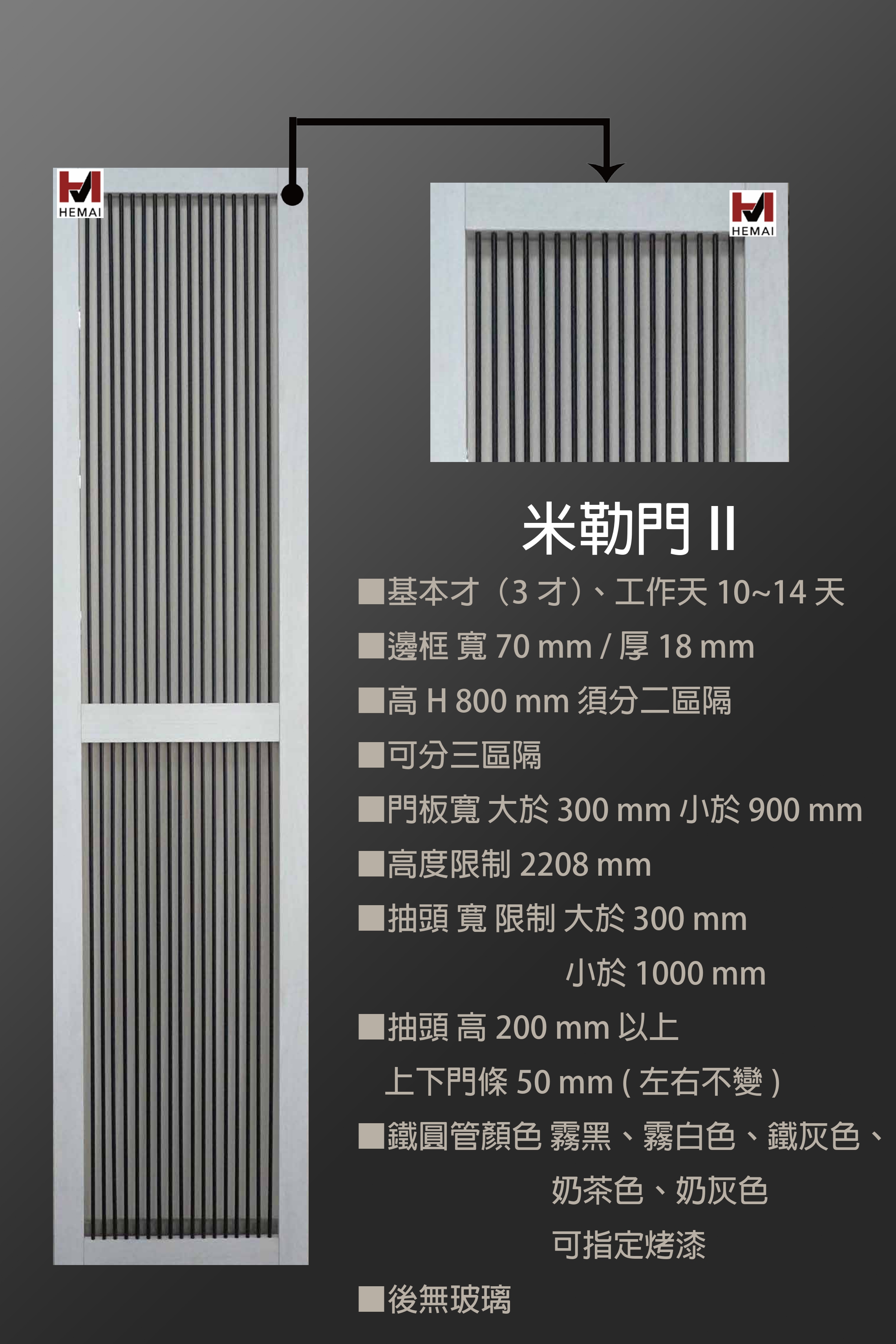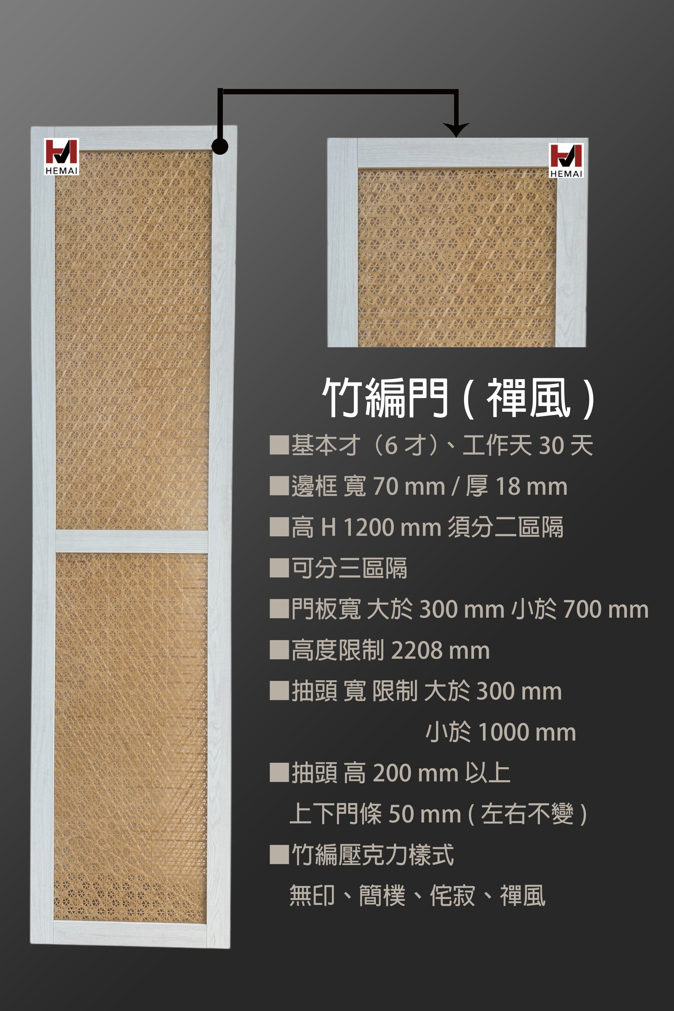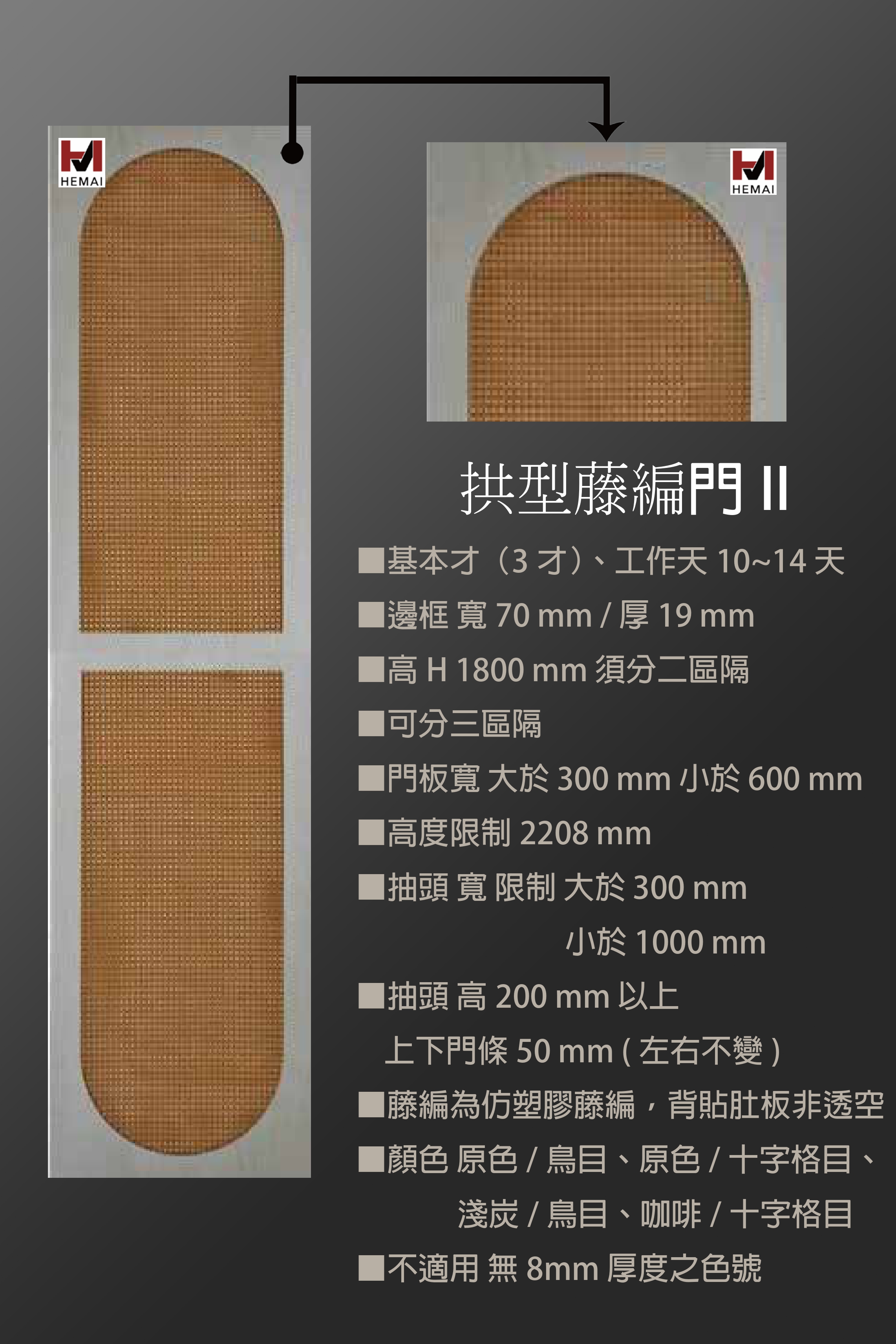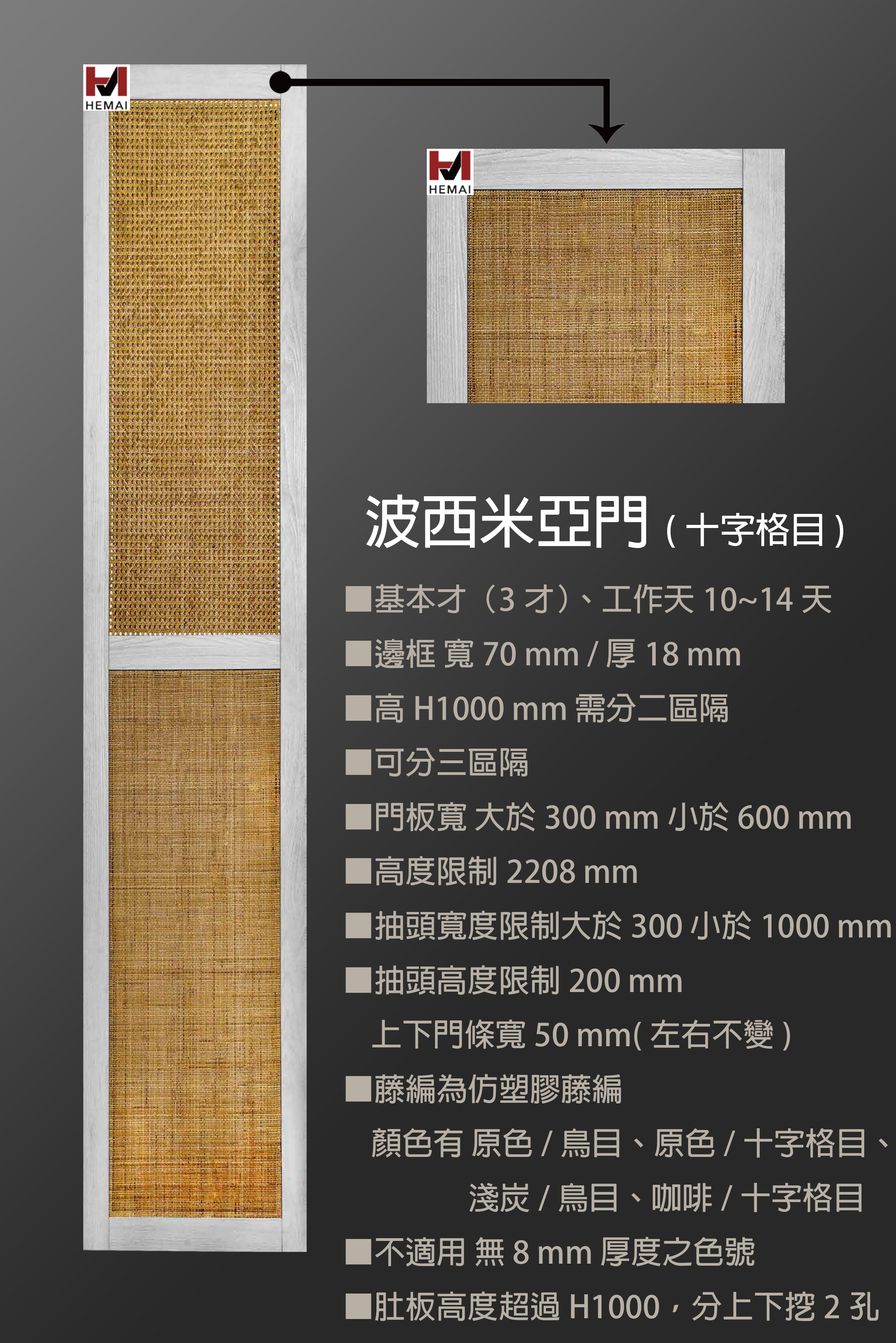 禾邁在造型樣式方面不斷力求創新,運用材料的特性不斷研發新的造型產品,在外型的變化與顏色搭配的巧思,創造千變萬化的全新樣式,造型門板皆以同色系統板加工製成,不僅無色差問題,並且在尺寸與外型的變化有相當大的彈性,在結構與耐久方面更經得起考驗。